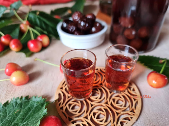 La primavera siguiente (2019)  lo preparé, a mi manera siguiendo un mix de recetas que encontré por la red, lo dejé macerando un año, pero el resultado no nos gustó, estaba excesivamente fuerte. Mientras tanto yo había encontrado una receta en uno de mis libros, y ya me di cuenta que el problema estaba en la cantidad de azúcar, que era mucho mayor que la que yo le había puesto al mío.  Volví a preparar otro licor que resultó mucho mejo, pero muy dulce. Como todavía conservaba el otro los mezclé y fue  un éxito total, no duró nada! Los siguientes ya  los he hecho con menos cantidad de azúcar y siguen teniendo un éxito rotundo, eso si, procuro que las cerezas y el aguardiente sean de la mejor calidad.